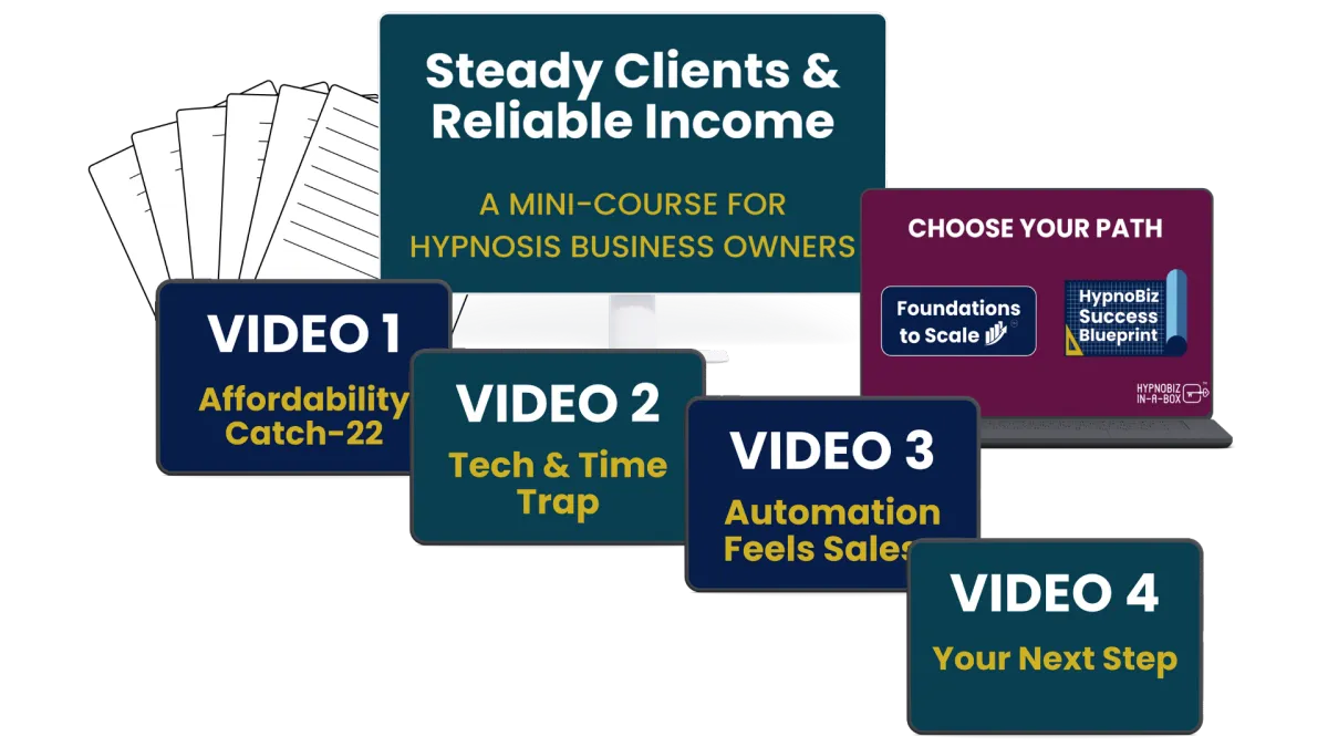 This mini-course was created for working hypnotists who want results that actually fit their life. Each short lesson gives you one simple action to take, so you can move forward without overwhelm.